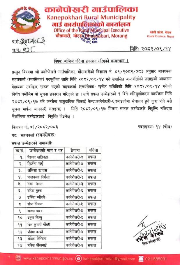अन्तिम नतिजा प्रकाशन सम्बन्धी सूचना।