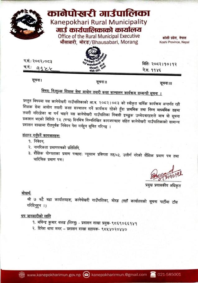 » निःशुल्क शिक्षक सेवा आयोग तयारी कक्षा सञ्चालन कार्यक्रम सम्बन्धी सूचना।
