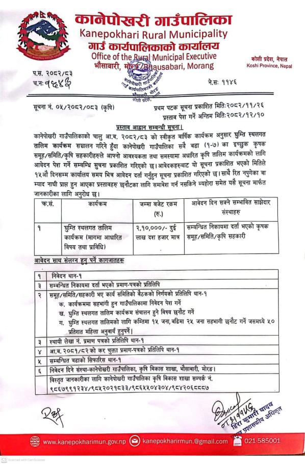 कृषि व्यवसाय प्रवर्द्धन प्रस्तावना पेश गर्ने सम्बन्धी सूचना।