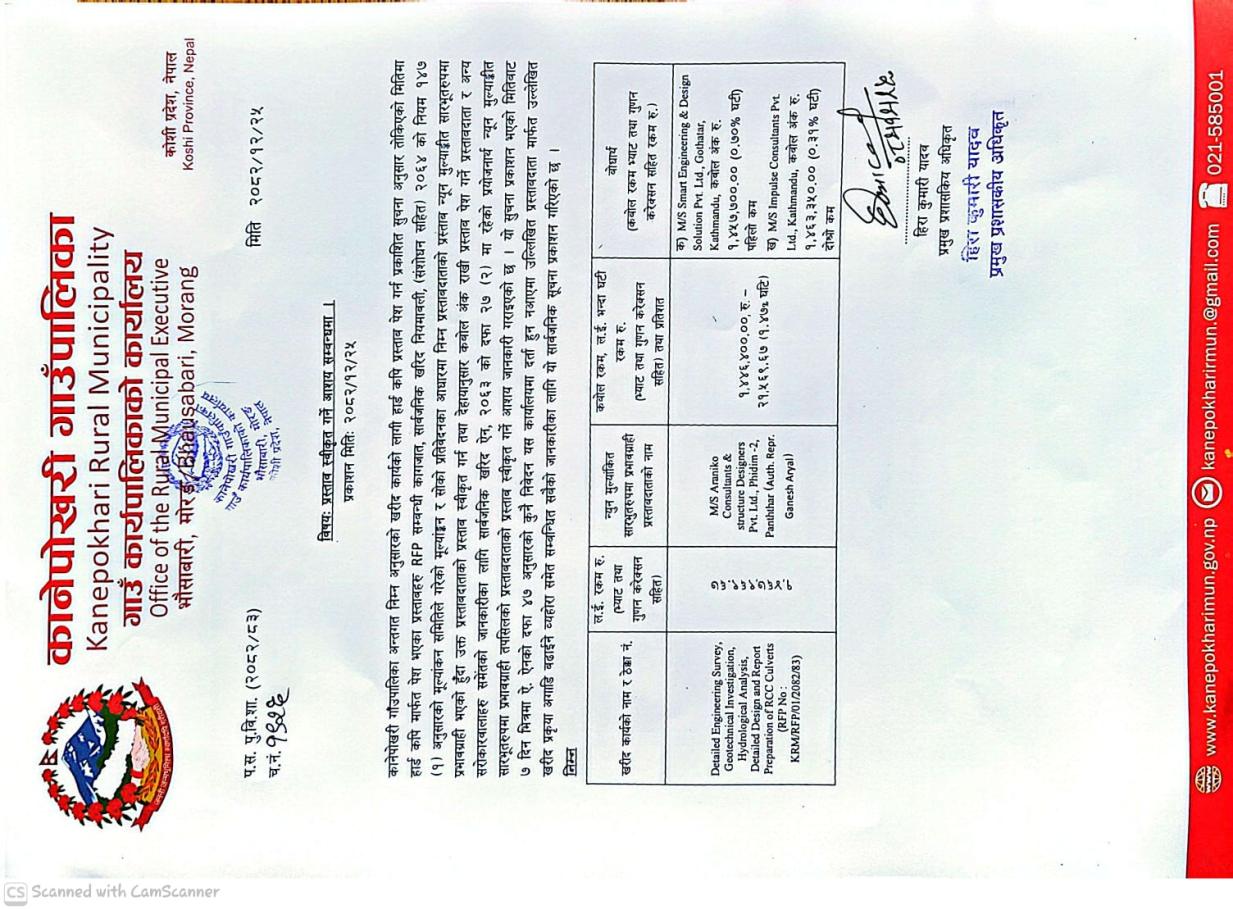 कानेपोखरी गाउँपालिकाको साउन महिना देखि हाल सम्मको निर्णयहरु