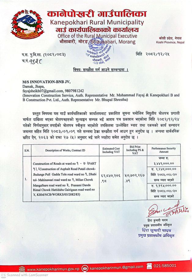 व्यवसायिक कृषि फर्महरुलाई व्यवसाय प्रवर्द्धन सहयोग, वडा नं.५ सम्झौता सम्बन्धी सूचना।
