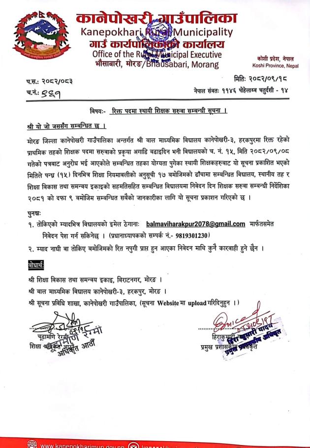 » रिक्त पदमा स्थायी शिक्षक सरुवा सम्बन्धी सूचना।
