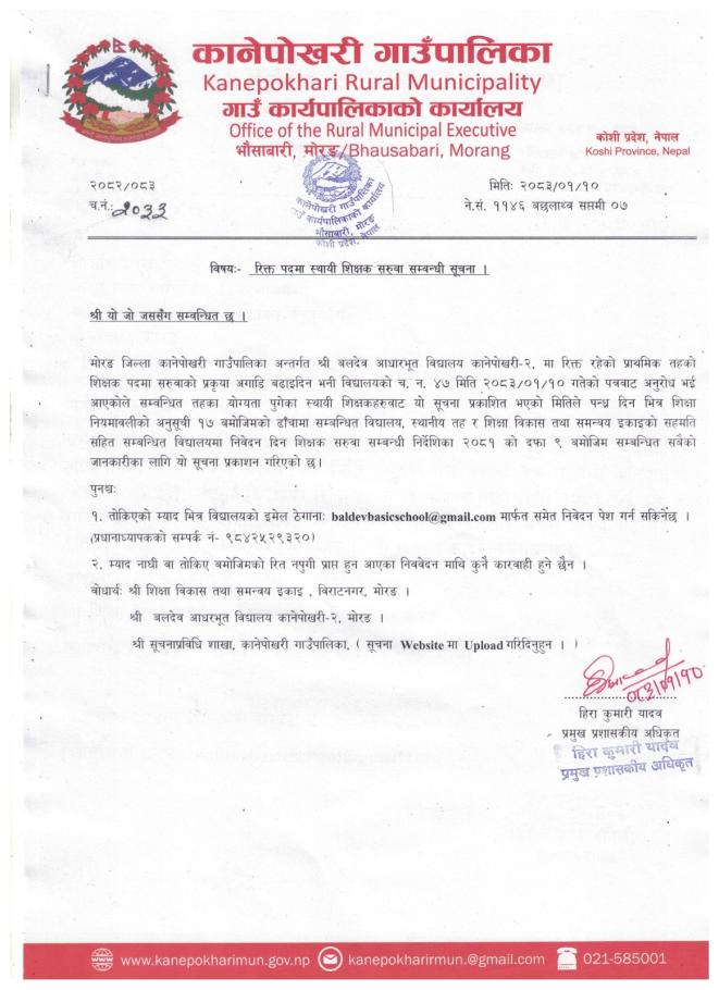 » रिक्त पदमा स्थायी शिक्षक सरुवा सम्बन्धी सूचना।