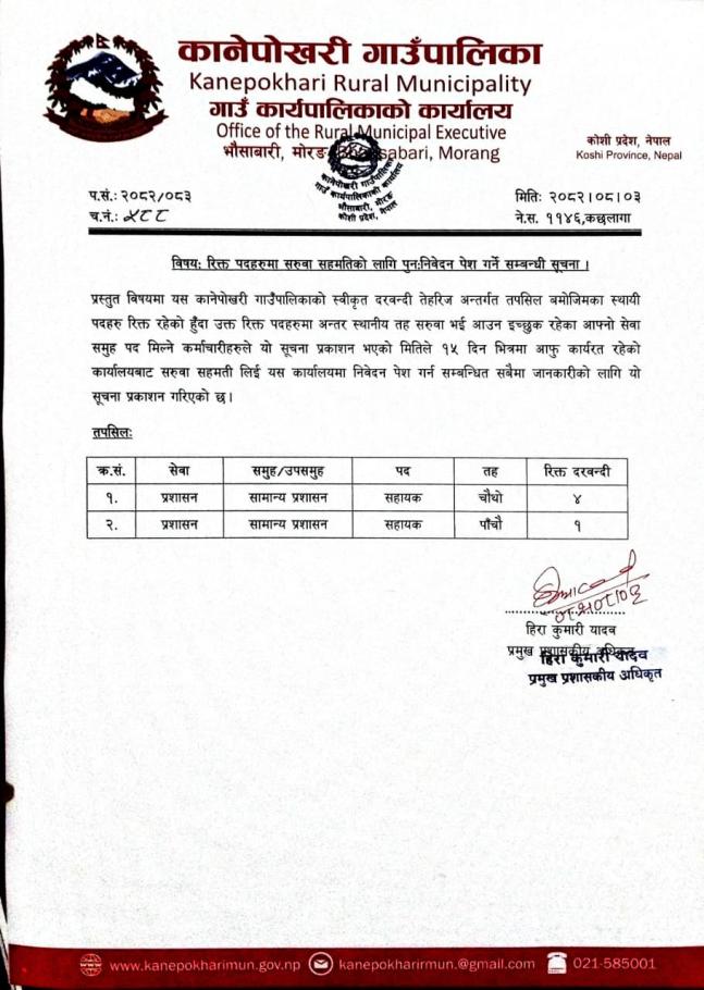 » रिक्त पदहरुमा सरुवा सहमतिको लागि पुनःनिवेदन पेश गर्ने सम्बन्धी सूचना।