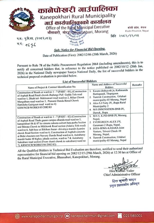 » Notice for financial bid opening