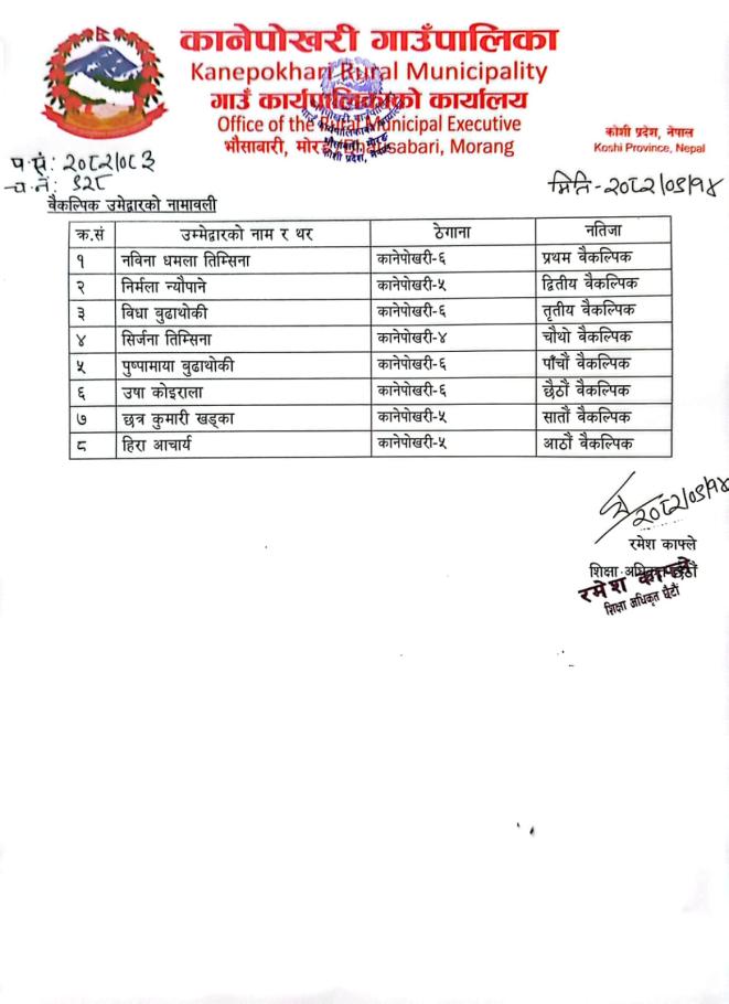 अन्तिम नतिजा प्रकाशन सम्बन्धी सूचना।