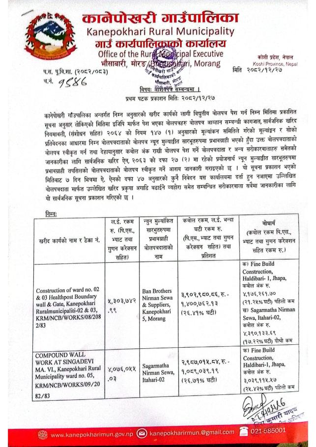 सार्वजनिक खरिद/बोलपत्र सूचना