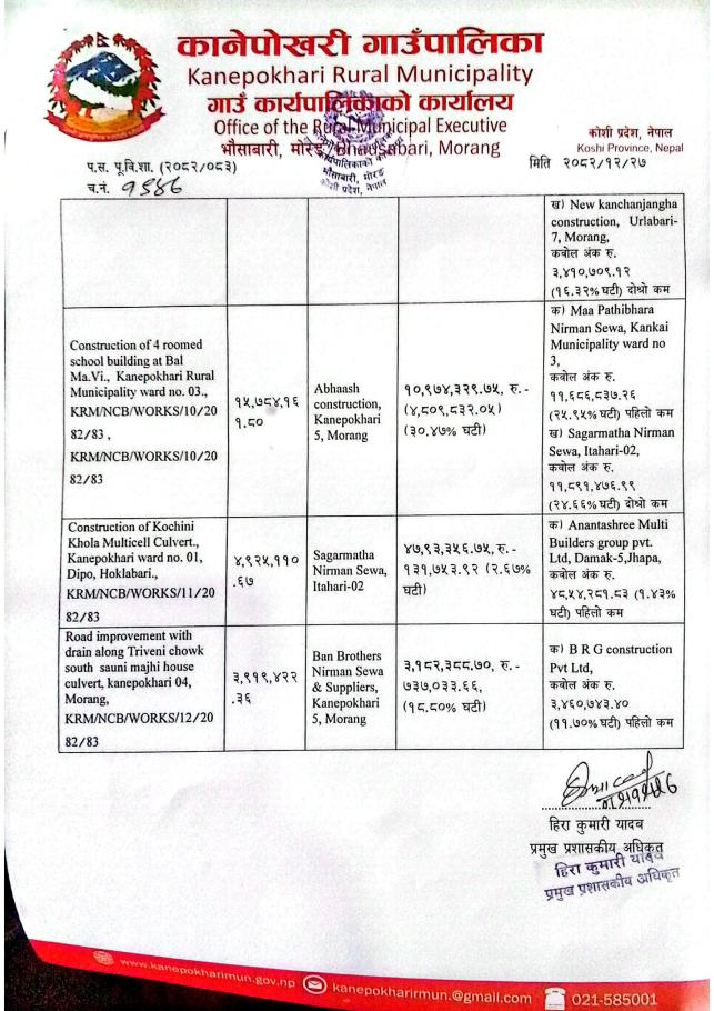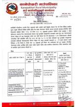 कानेपोखरी गाउँपालिकाको साउन महिना देखि हाल सम्मको निर्णयहरु