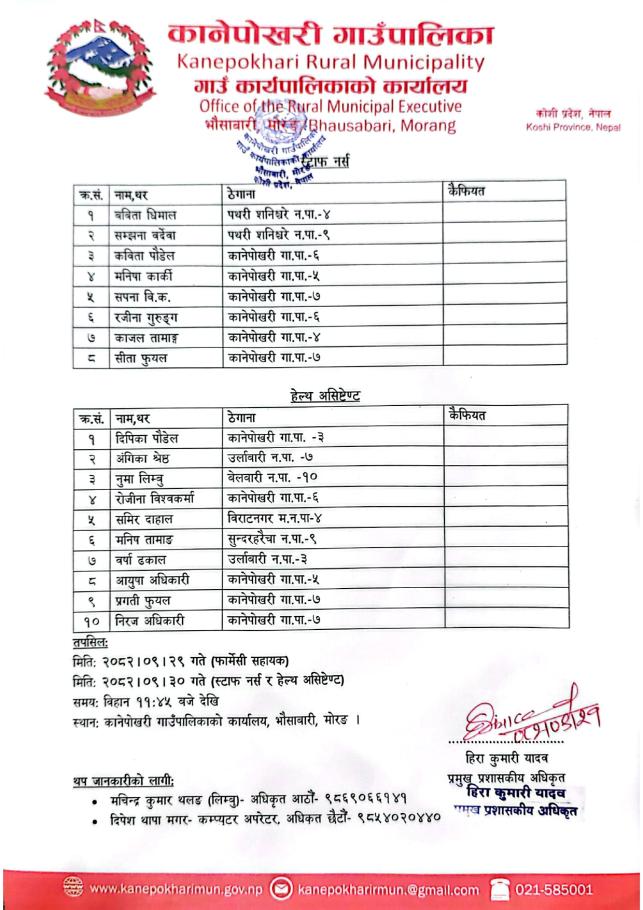 कानेपोखरी गाउँपालिका,गाउँ कार्यपालिकाको कार्यालय