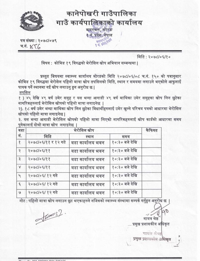 कोभिड-१९ विरुद्धको भेरोसिल खोप अभियान सम्बन्धमा