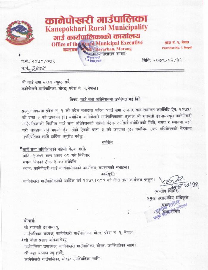 गाउँ सभा अधिवेशनमा उपस्थित हुने सम्बन्धमा