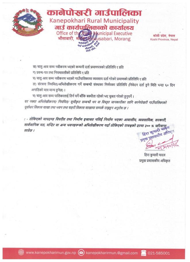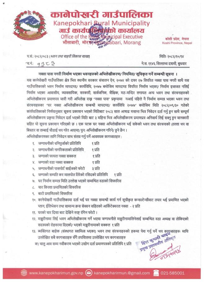 नक्सापास नगरी निर्माण भएका भवनहरुको अभिलेखीकरण/नियमित/सूचिकृत गर्ने सम्बन्धी सूचना।