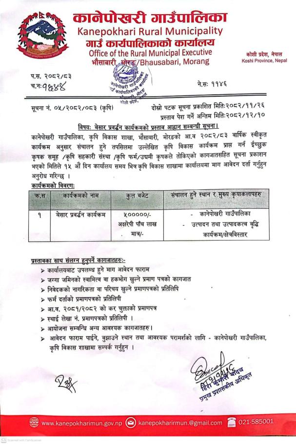 कृषि व्यवसाय प्रवर्द्धन प्रस्तावना पेश गर्ने सम्बन्धी सूचना।