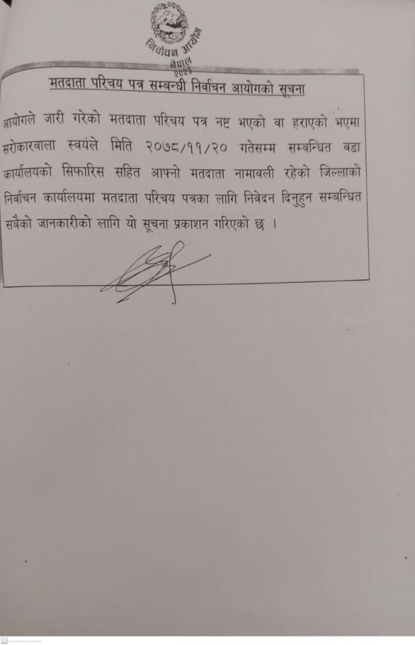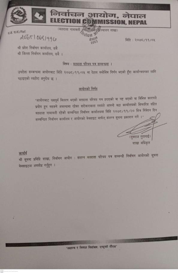 निर्वाचन आयोगबाट जारी मतदाता परिचयपत्र सम्बन्धी सूचना ।