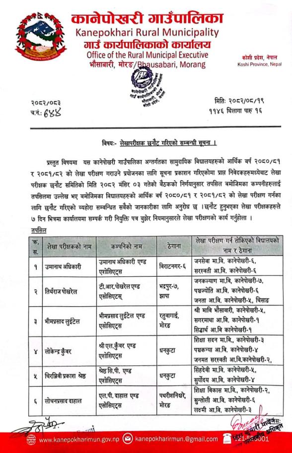 » लेखापरीक्षक छनौट गरिएको सम्बन्धी सूचना।