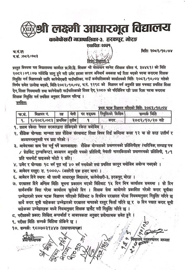 कार्यालय सहयोगी पदको सूचना संशोधन गरिएको सम्बन्धी सूचना।