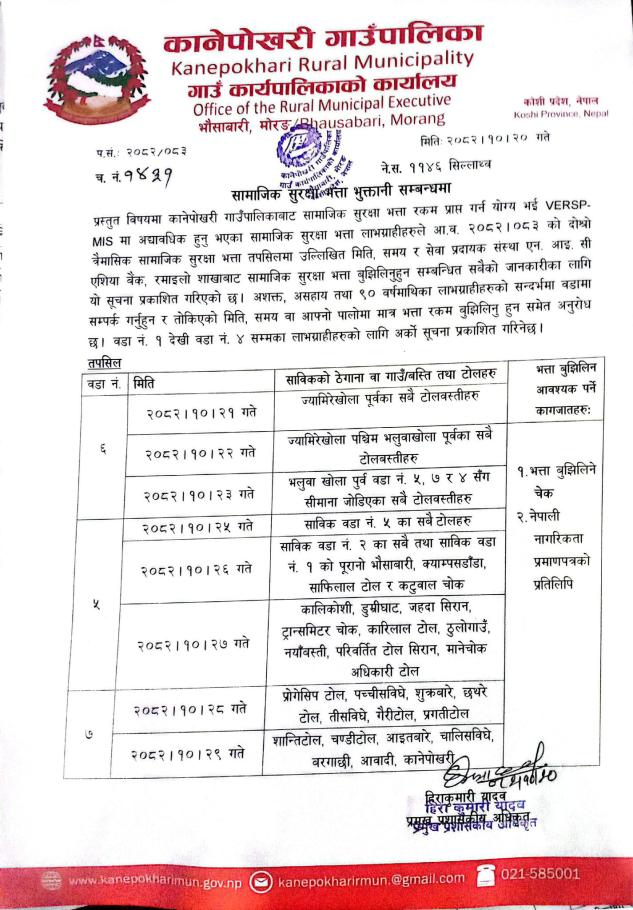 » सामाजिक सुरक्षाभत्ता भुक्तानी सम्बन्धी सूचना।