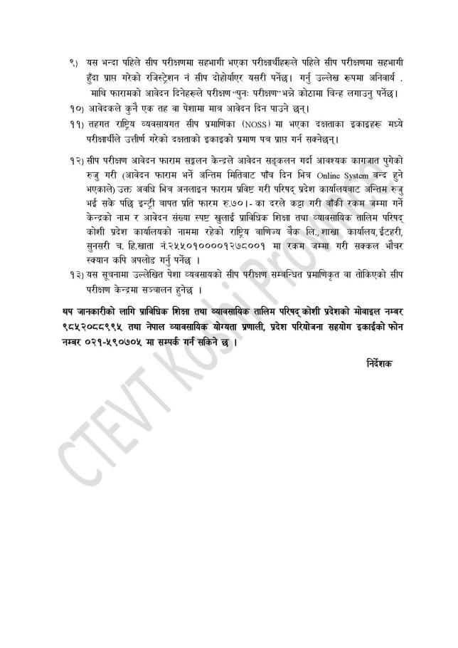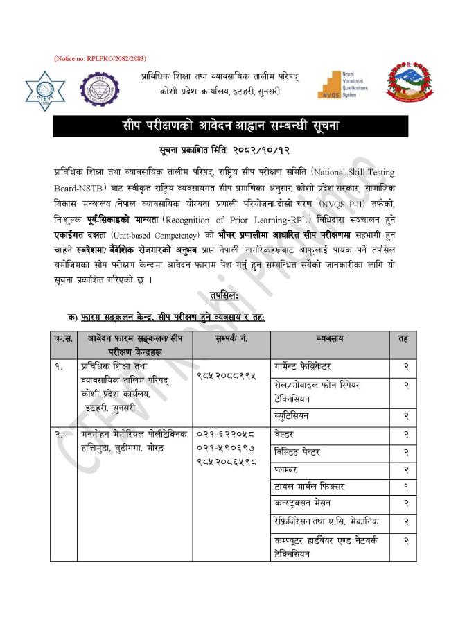 सीप परीक्षणको आवेदन आह्वान सम्बन्धि सूचना