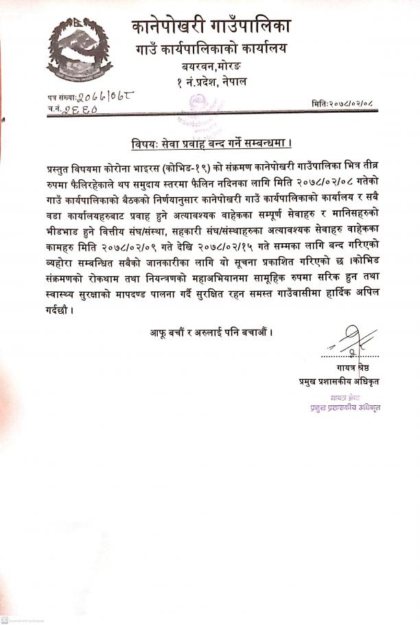 सेवा प्रवाह बन्द गर्ने सम्बन्धमा ।