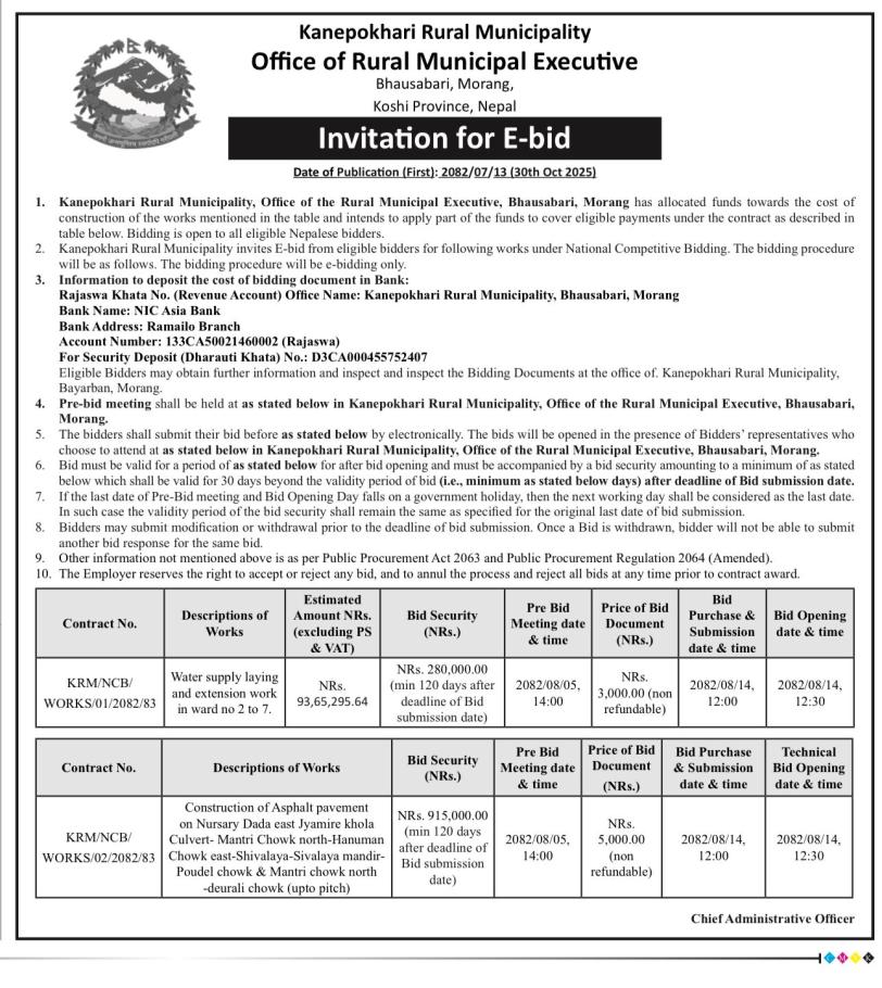 सार्वजनिक खरिद/बोलपत्र सूचना